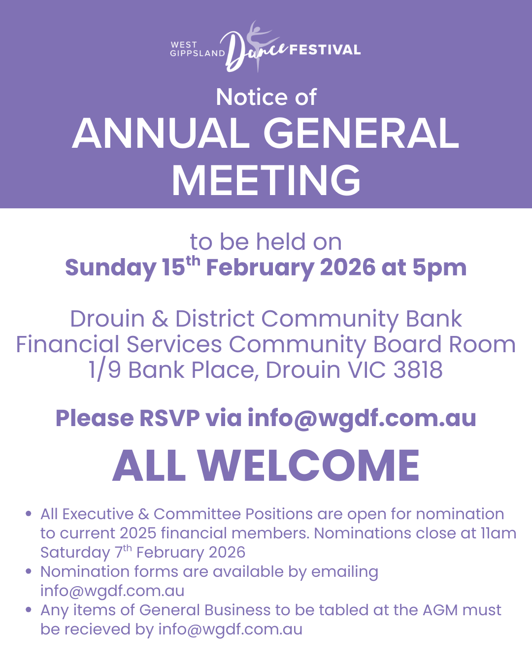 Sponsorship packages will be available for the 2025 West Gippsland Dance Festival Shortly. Please download our prospectus if you would like to donate